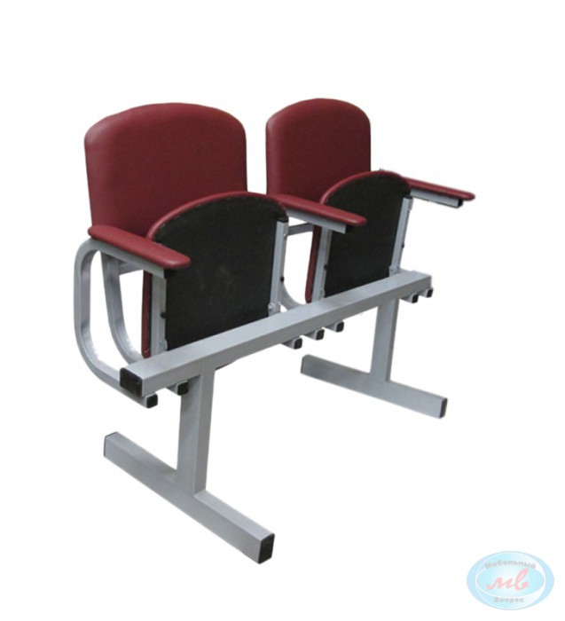 Каркас металлический, сиденья и спинка мягкие, сиденья откидные, подлокотники мягкие. Для мягких частей мы используем искусственную кожу или флок.