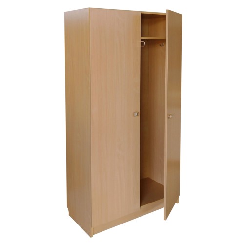 Двери распашные. Внутри шкафа: полка для головных уборов, выдвижная штанга для плательных вешал и 2 крючка, закрепленных на боковых стенках изделия. Расположение «вешалок» поперек шкафа позволяет сэкономить площадь помещения.