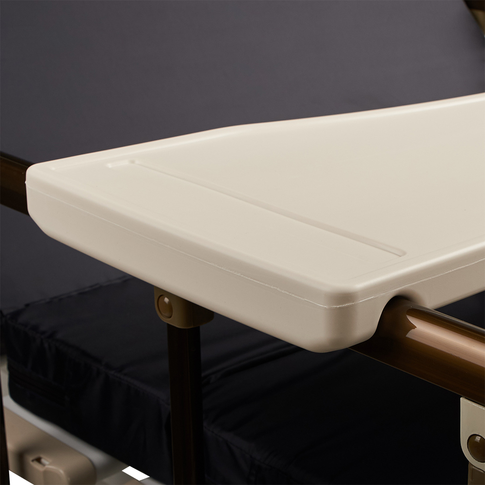 Удобный надкроватный столик изготовлен из легкомоющегося пластика. Такой аксессуар легко устанавливается на боковые рейлинги кровать и делает пребывание пациента в кровати гораздо более комфортным