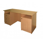 Тумбы стола комбинированные: одна с 3-мя выдвижными ящиками, вторая – с полкой за дверью отделения. Под крышкой стола расположены две ниши быстрого доступа.